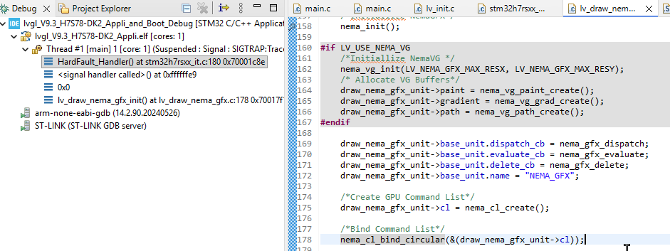 Has anyone a working version of lvgl on a STM32H7S78 with nema-gfx running, or