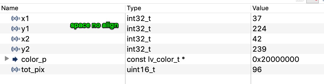 Is there a good breakpoint in the lvgl VDB routines to see exactly what is written to the VDB for each pixel and memory location? When I break during the flush, I can see in memory that the bad pixels are present before being sent out. It looks like the bad pixels are the last word that was used for the previous update in memory.