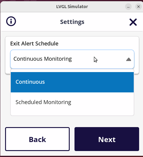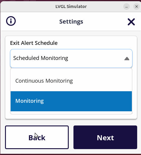 lv_dropdown_set_options(dropdown, “Continuous Monitoring\n” “Scheduled Monitoring”);