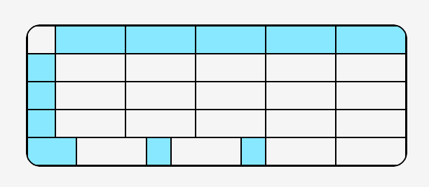 How to use lvgl_editor and lvgl to implement a table widget where the column widths vary in different rows, with rounded corners on all four sides (as shown in the figure).