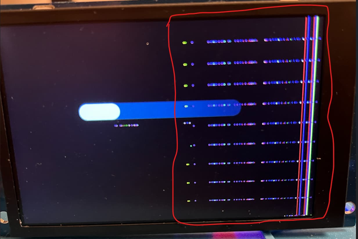 Now the above resolved the first issue. The first screen was drawing cleanly but the second issue is that when I try to update the the text or the value of the bar in my main while loop, I get gibberish/corruption again. It is hard to capture it on a still picture and don’t think I can directly upload videos here but the text is red so all I see is red specs being drawn where the text should be. The bar is blue and all I see is blue lines being drawn within the area where the bar should be.