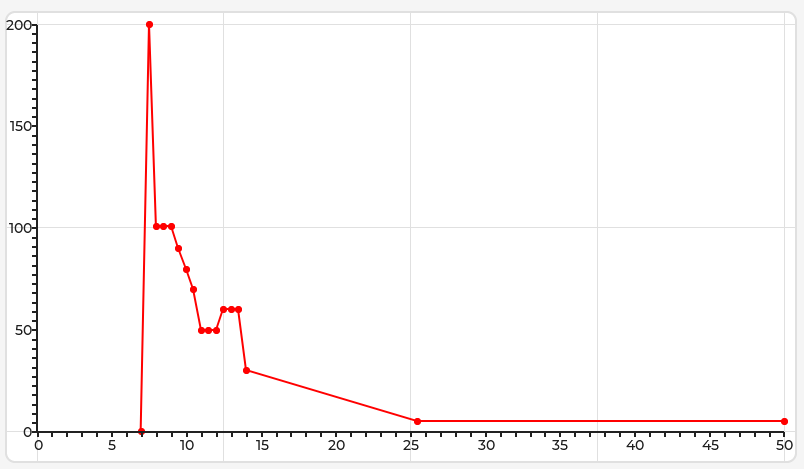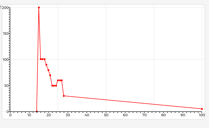 Or maybe there is some way to set up the graph so that the points are specified as integers, but displayed on the graph as fractions. Ыimilar to that, I set an array containing x = 0, 5, 10, 15, and on the chart they were displayed at points 0, 0.5, 1