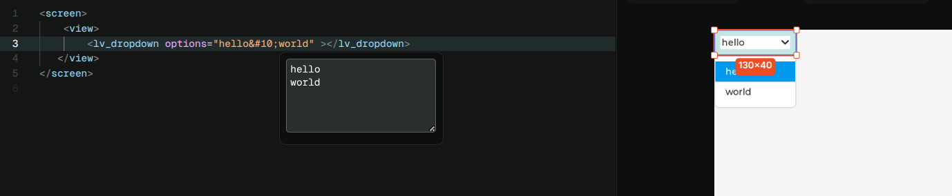 Why does setting options as a newline (\n ) separated string in the XML file result in an ineffective preview, while the default one works?