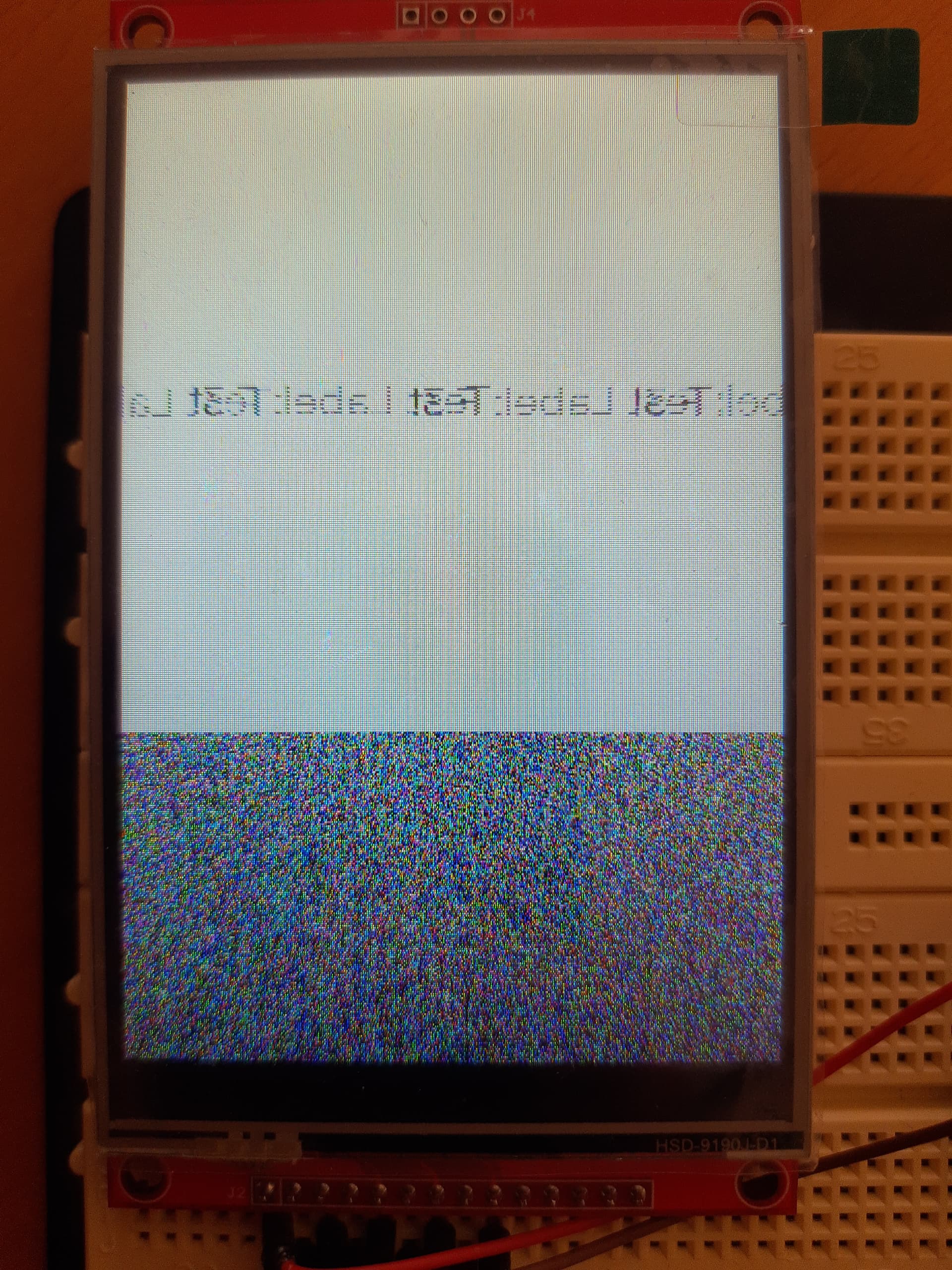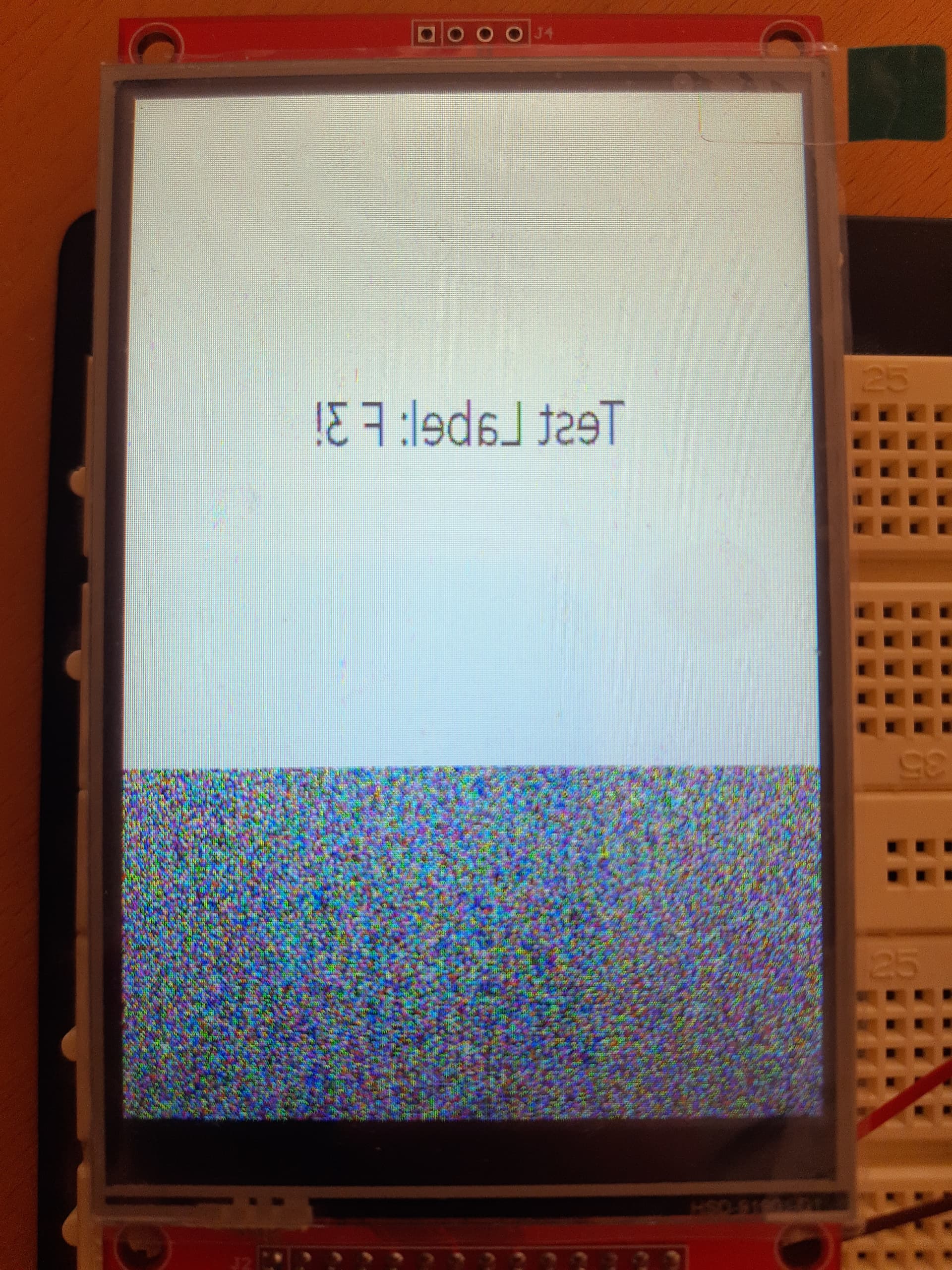 Picture of the issue with rotation set to 90 or 270 degrees (or HRES and VRES swapped manually). Note that the label is properly centered within the white-backgroud part of the display.: